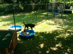 Je dispose de grands espaces verts (que j’utilise comme terrains d’entrainement au rappel), de rivières, de champs, ... Votre chien est promené 3x/jour et je joue avec lui environ 3h sur la journée. Son éducation est travaillée une dizaine de fois sur la journée par sessions d’environ 10 minutes.